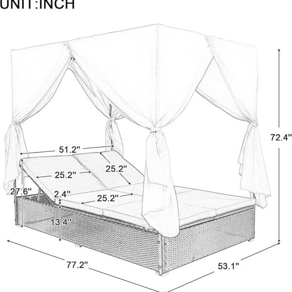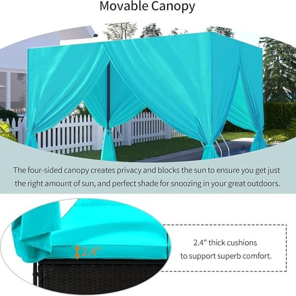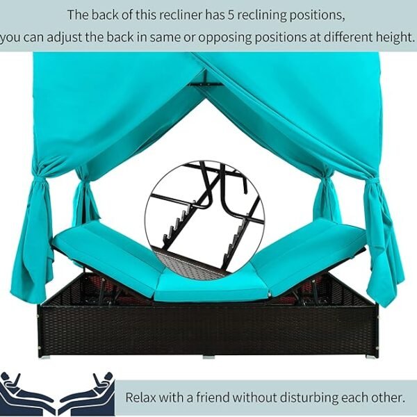 Upgrade your outdoor living area with this All-Weather Rattan Patio Sunbed, a versatile lounge solution built for comfort, durability, and group leisure. The sturdy, weather-resistant wicker frame and UV-safe finish ensure long-lasting use even under sun or rain, while the overhead canopy and side curtains offer shade and privacy when you want to relax outdoors. Amazon+1