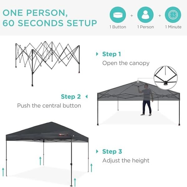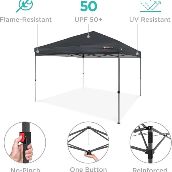Create a comfortable outdoor retreat with the Best Choice Products 10×10 ft 1-Person Pop-Up Canopy Tent — an easy, portable shade solution ideal for gardens, patios, beach trips, picnics, markets, or backyard events. With a simple one-button push mechanism and no-pinch height adjusters, you can set up or fold the canopy solo in a minute. Amazon+1