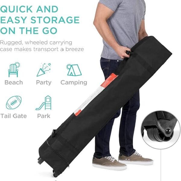 This tent is compact and portable — when folded, it fits into a wheeled storage bag for easy transport and storage. Adjustable-height sliders allow you to choose from multiple height settings to suit your needs. Amazon+1