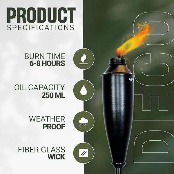 The Deco Window 4-Pack 60″ Metal Garden Torches are an excellent choice to enhance any outdoor space — ideal for gardens, patios, walkways, or backyard events. Each torch is crafted from sturdy metal with a shiny weather-resistant finish, ensuring long-lasting durability season after season. Amazon