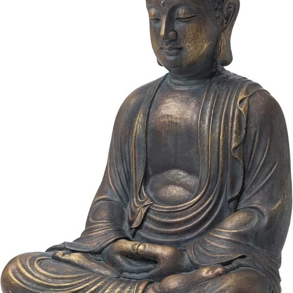 Zen Style Décor: The antique bronze finish and distressed texture give the statue a timeless, natural stone-like aesthetic — blending seamlessly with plants, water features, pathways, or rock gardens. Amazon