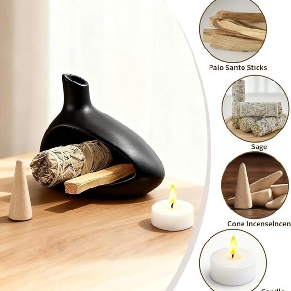 Upgrade your relaxation or spiritual space with the Guedawv Ceramic 4-in-1 Incense & Sage Holder, a handcrafted ceramic burner designed for maximum versatility. Whether you’re burning incense sticks, lighting palo santo or sage, or simply using a candle — this burner keeps ash contained and surfaces safe, while adding a touch of rustic elegance to any room. Amazon