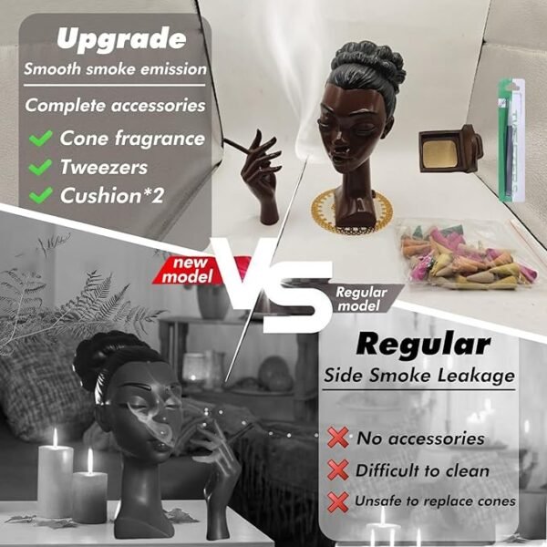 Whether you want gentle aroma diffusion, a calming ambiance, or a striking decorative accent — the Headscents Black Woman Head Incense Burner blends art, utility, and serenity in one elegant piece.