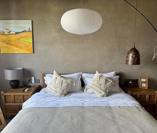 The shade is crafted from flexible cotton-paper material, hand-pasted over a sturdy inner steel frame — combining traditional design with reliable structure that won’t bend easily. Amazon Its round shape and white finish make it perfect for minimalist, Scandinavian, Japanese, or modern interiors, offering soft diffused light that enhances ambiance without harsh glare.