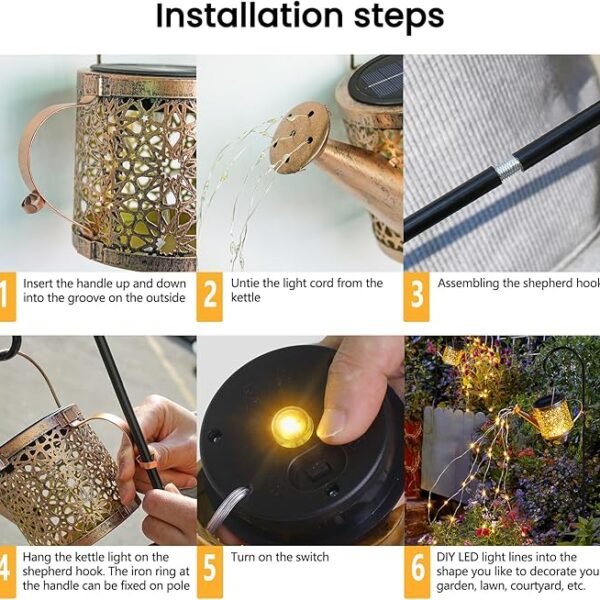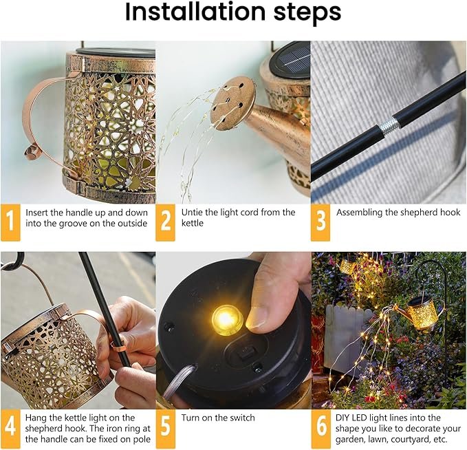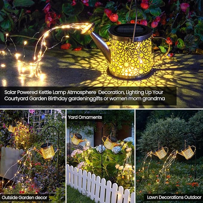 Transform your outdoor space with the Misawce Solar Watering Can Lantern — a charming, eco-friendly lighting solution that doubles as garden décor and night-time ambiance. The lantern includes 6 strands of 60 bright LED lights, which glow softly when the sun sets and charge automatically during the day, offering up to 8-12 hours of illumination after a full 6-8 hour charge. Amazon
