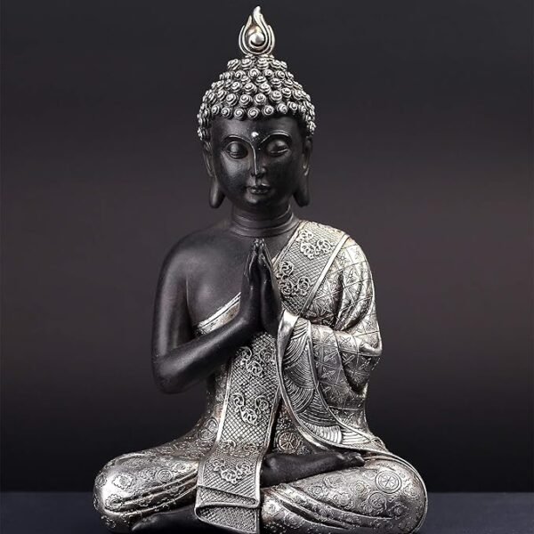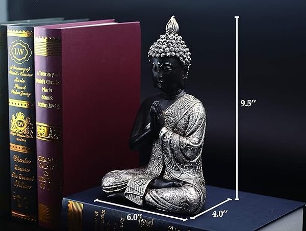 Bring calm, harmony, and subtle spiritual charm to your space with the JORAE Seated Buddha Statue. This finely crafted resin figurine features a meditative Buddha in a lotus pose, complete with serene, closed-eyes expression and detailed silver-robe accents over a dark body — combining classic Buddhist aesthetics with modern décor appeal. Amazon