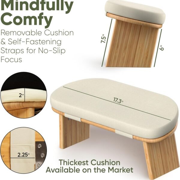 The Landora & Leaf Foldable Bamboo Meditation Bench is designed for anyone looking to meditate, practice yoga, pray, or enjoy peaceful tea time with comfort and stability. Its ergonomic seiza-style seat with a 1.6″ extra-thick cushion supports proper spine alignment — helping reduce strain during extended sitting sessions. amazon.com