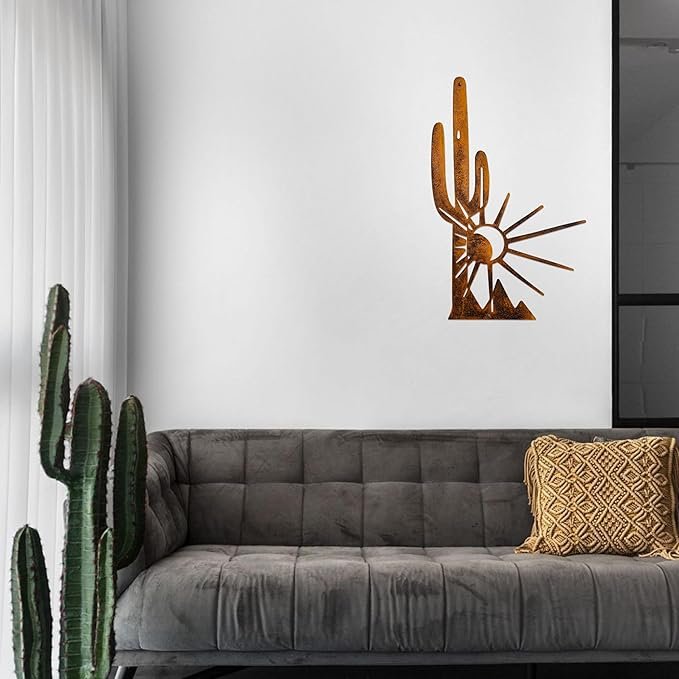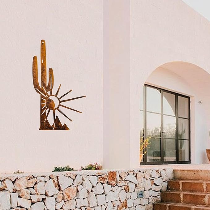 Bring southwestern style and rustic character to your space with this Metal Cactus Wall Decor. Crafted from sturdy metal with a weather-resistant finish, it’s designed for both indoor and outdoor use — so you can hang it on a living room wall, patio, garden fence, balcony, or entryway. Amazon