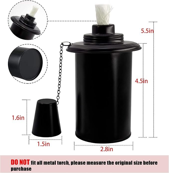Keep your outdoor torches burning bright with this 4-pack of refillable 12 oz metal canisters from Nonley. Each canister comes with a wick and snuffer cap — easy to fill and ideal for patios, gardens, parties, and cozy evening lighting.