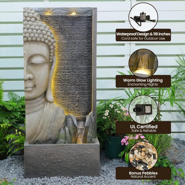 Enhance your outdoor space with the Tankana 47.5″ Outdoor Buddha Waterfall Fountain, a stunning garden feature designed to bring calm, beauty, and ambient water sounds to patios, gardens, courtyards, or meditation corners. Amazon+1