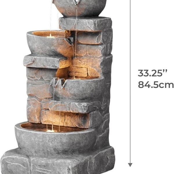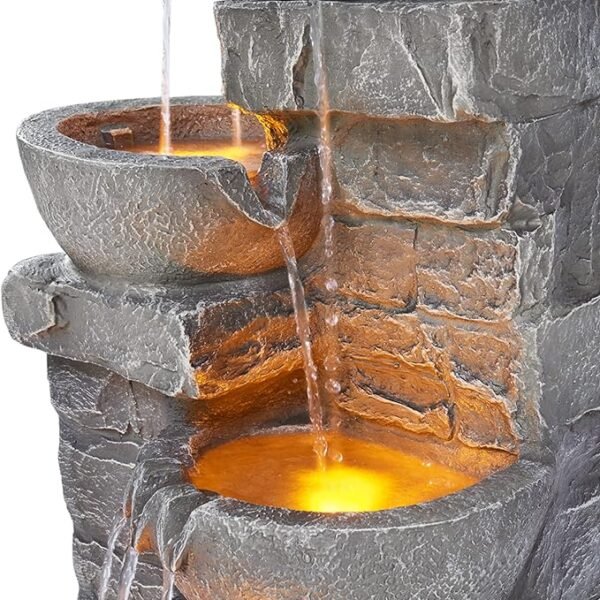Bring relaxing water sounds and natural charm to your outdoor space with the Teamson Home 33.25″ Cascading Bowl Outdoor Water Fountain. This freestanding fountain features a realistic stacked-stone design crafted from durable, weather-resistant polyresin — built to withstand outdoor conditions year-round. Amazon+1