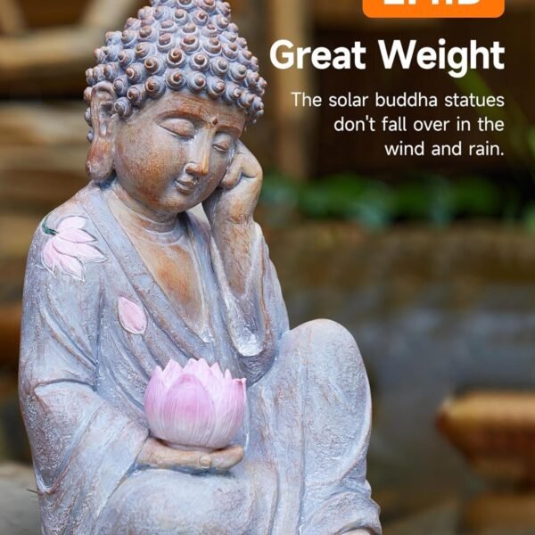 Bring serenity, soft light, and a Zen-inspired vibe to your outdoor space with the Thumok Solar Buddha Statue. This compact (≈ 11.8″ H × 6.7″ W × 11.8″ D) statue combines the tranquil symbolism of Buddha with a functional solar-powered lotus LED light — recharging by day and softly glowing at night to transform patios, gardens, or lawn pathways into peaceful retreats. Amazon